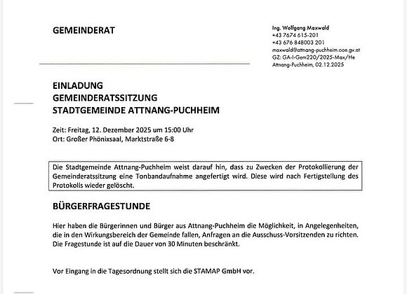 Die letzte Gemeinderatssitzung in diesem Jahr findet am FREITAG um 15 Uhr statt. Wie immer sind interessierte Zuhörer - trotz der ungewöhnlich langen…